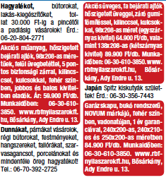 Nagyobb méretű hirdetéseknél kérjük vegye fel a kapcsolatot hirdetési tanácsadónkkal: Hegedüs Gergő +36/30/357-2009